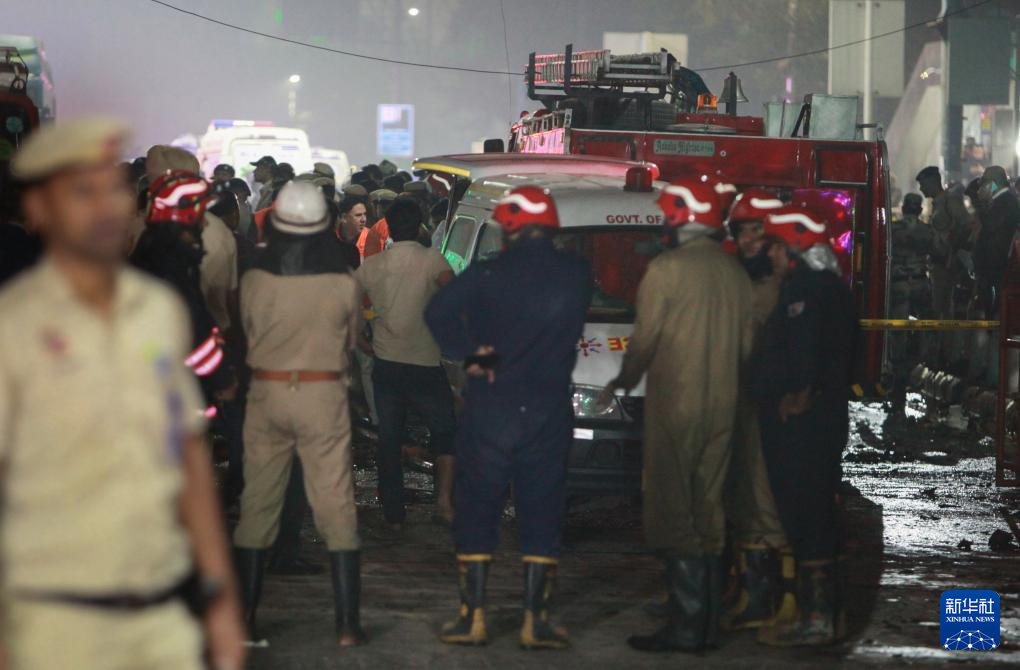 新华社新德里11月10日电 据印度媒体报道,印度首都新德里红堡地铁站附近10日夜间发生汽车爆炸,造成至少10人死亡、多人受伤。爆炸发生后,新德里、孟买等城市提高了警戒级别。 11月10日,在印度新德里,警察和消防员聚集在汽车爆炸现场周围。新华社报道称,红堡是印度热门旅游景点,周围人群密集。现场视频显示,爆炸后多辆汽车被大火吞没,附近建筑物和车辆的窗户被损坏。新德里警方随后联系了事发地点,伤者被送往附近医院。至少有七辆消防车赶到现场参与救援。新德里警方表示,爆炸原因仍在调查中。爆炸情况仍不清楚。据印度媒体报道,新德里、孟买等城市已宣布进入高度戒备状态,当地警方加强了重点地区的安保。 11月10日,印度新德里,一辆救??护车抵达汽车爆炸现场。新华社