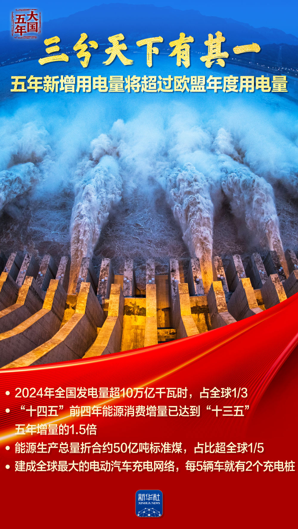 全社会用电量中,每用电3千瓦时,就有1千瓦时的绿色电力;风电、光伏装机容量历史性超过火电,新能源发电的崛起成为国家新的发电方式。